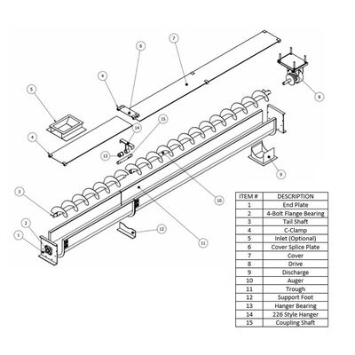 Дизайн U-образного яма:Предоставляет большую емкость, чем традиционные цилиндрические конвейеры с винтом, и предлагает более легкий доступ для проверки и очистки по сравнению с герметичными конвейерами труб.